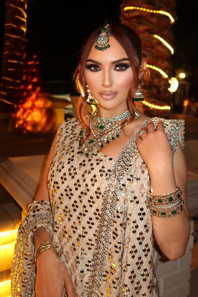 Laleh is a graceful chiffon peshwas adorned with intricate thread zara embroidery and foil work all over, complemented by a mirror-worked border on the damaan and dupatta. The dupatta is attached to the shirt, creating a seamless and elegant silhouette that eInudes sophistication. Peshwas length 59 inches.