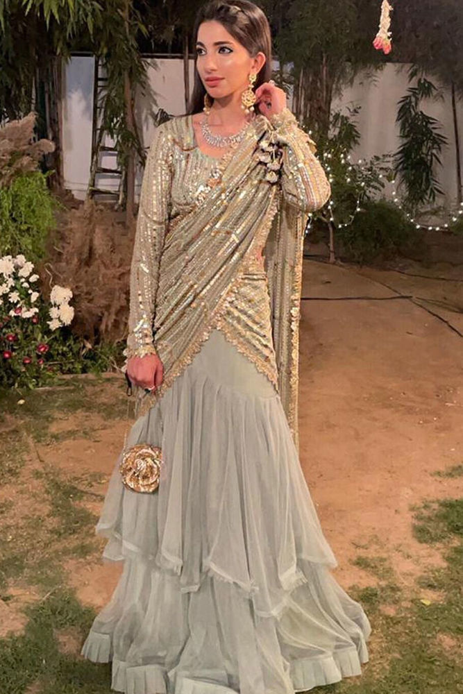 Color: Mint Greenish Blue Fabric: Georgette Chiffon Work Details: Hand Worked